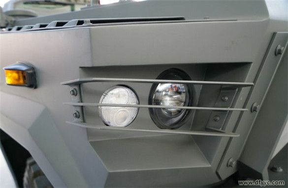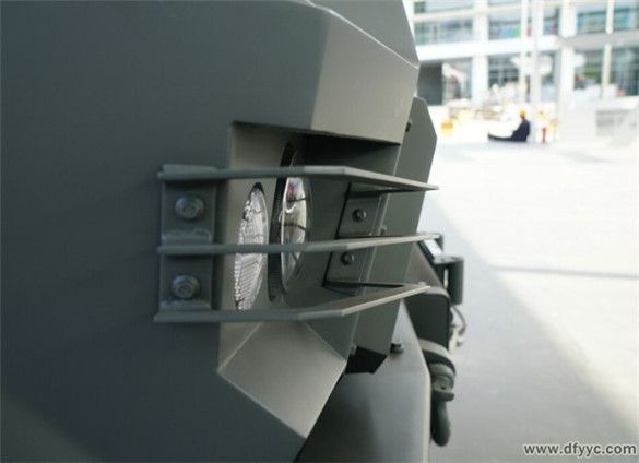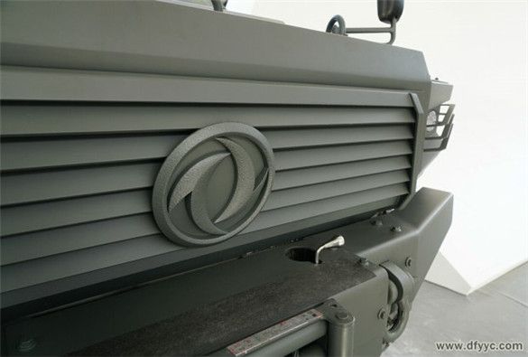 東風(fēng)四驅(qū)防雷反恐戰(zhàn)車的前組合燈分為帶透鏡的近光燈、雙角度照射遠光燈,轉(zhuǎn)向燈位于翼子板兩側(cè)。近光燈與遠光燈被3幅面橫置格柵保護。
