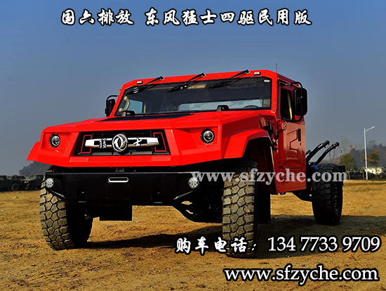 東風猛士民用版EQ2063EYY6J型長頭單排四驅越野底盤是東風越野車公司針對民用方面的首款軍轉民產(chǎn)品代表,其繼承東風軍用猛士的正規(guī)血統(tǒng),品質(zhì)優(yōu)異,技術過硬。東風猛士民用版EQ2063EYY6J采用東風猛士M50型四驅底盤改造而成,采用東風康明斯D4.0NS6B195型國六柴油發(fā)動機,195馬力 ,排量4L帶增壓,最大扭矩600/1100-2200(N.m/r/min);猛士5擋軍用手動變速箱;分動箱為四輪全時驅動帶高低擋;軸距3800mm;整備質(zhì)量3540kg;核定載質(zhì)量2460kg;輪胎采用305/80R18MPT全鋼子午線輪胎,帶自動中央充放氣系統(tǒng);整車總質(zhì)量6000kg,國六B排放全國可上黃牌,整車尺寸:5320*2310*1950mm;最小離地間隙388mm,最大垂直越障400mm,通過性強,適應高海拔極寒極熱地區(qū),全國暢行無阻,最高車速可達120km/h。